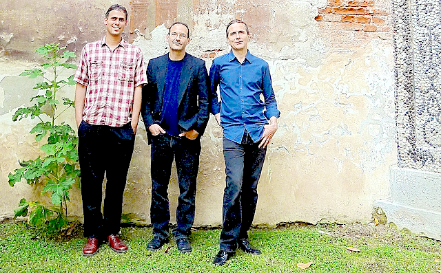 (L → R) Vijay Anderson, Ben Goldberg, e Sheldon Brown a Novarra Jazz Festival in Italia