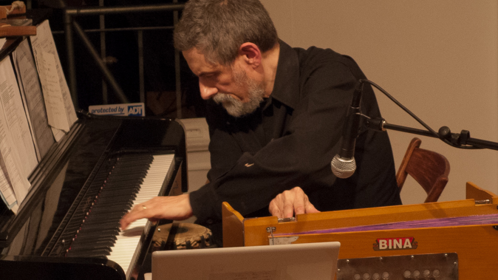 Turquoise Yantra Grotto is a unique space near Glen Park in San Francisco offering, in addition to a normal piano, site-specific invented instruments like the gamelan piano and zen industrial carillon — a cozy laboratory to explore the world chamber music of the future in an unexpected dialog between global roots traditions and modernist music.